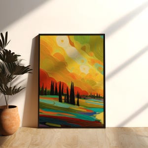 Capture the tranquillity of the open ocean with this captivating sailboat print. A lone Galleon cuts through turquoise waters, its sails billowing under a vibrant sunset sky. Blazing orange melt into deep blue and Teal, creating a breathtaking backdrop. Wisps of smoke add a touch of intrigue to the scene, leaving you to wonder about the boat's journey. This peaceful seascape is the perfect addition to any coastal-inspired home.