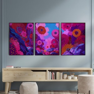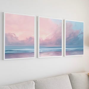 https://www.etsy.com/shop/DgtlPrintsByJason?section_id=55001050Transform your space with this captivating and serene aesthetic wall art print. This stunning piece blends minimalist design with a modern, painterly touch, inspired by the tranquil beauty of Japanese landscapes. It features two stylized trees with soft, pink cherry blossom-like blooms set against a large, hazy blush-pink sun. The artwork's unique texture, with its striking grey-blue brushstrokes and subtle dripping effects, adds a dynamic and contemporary feel. The muted color palette of soft pinks, deep greys, and off-white creates a calming and sophisticated atmosphere, making it a perfect fit for a variety of decor styles.
