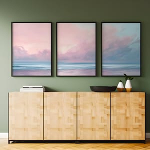 Transform your home into a tranquil sanctuary with this stunning three-piece digital wall art set. Featuring a captivating blend of deep teal and vibrant yellow, these abstract landscape prints capture the shimmering magic of a lakeside sunset.
