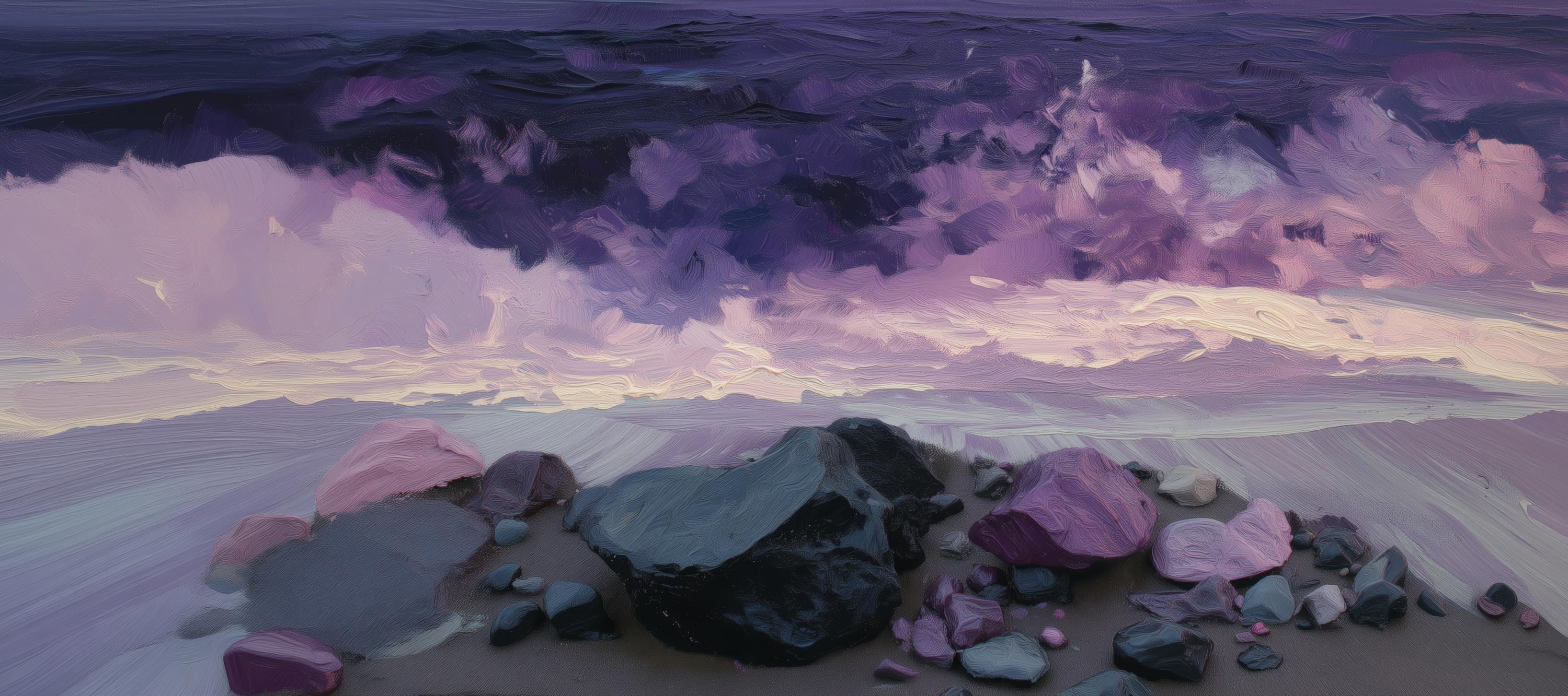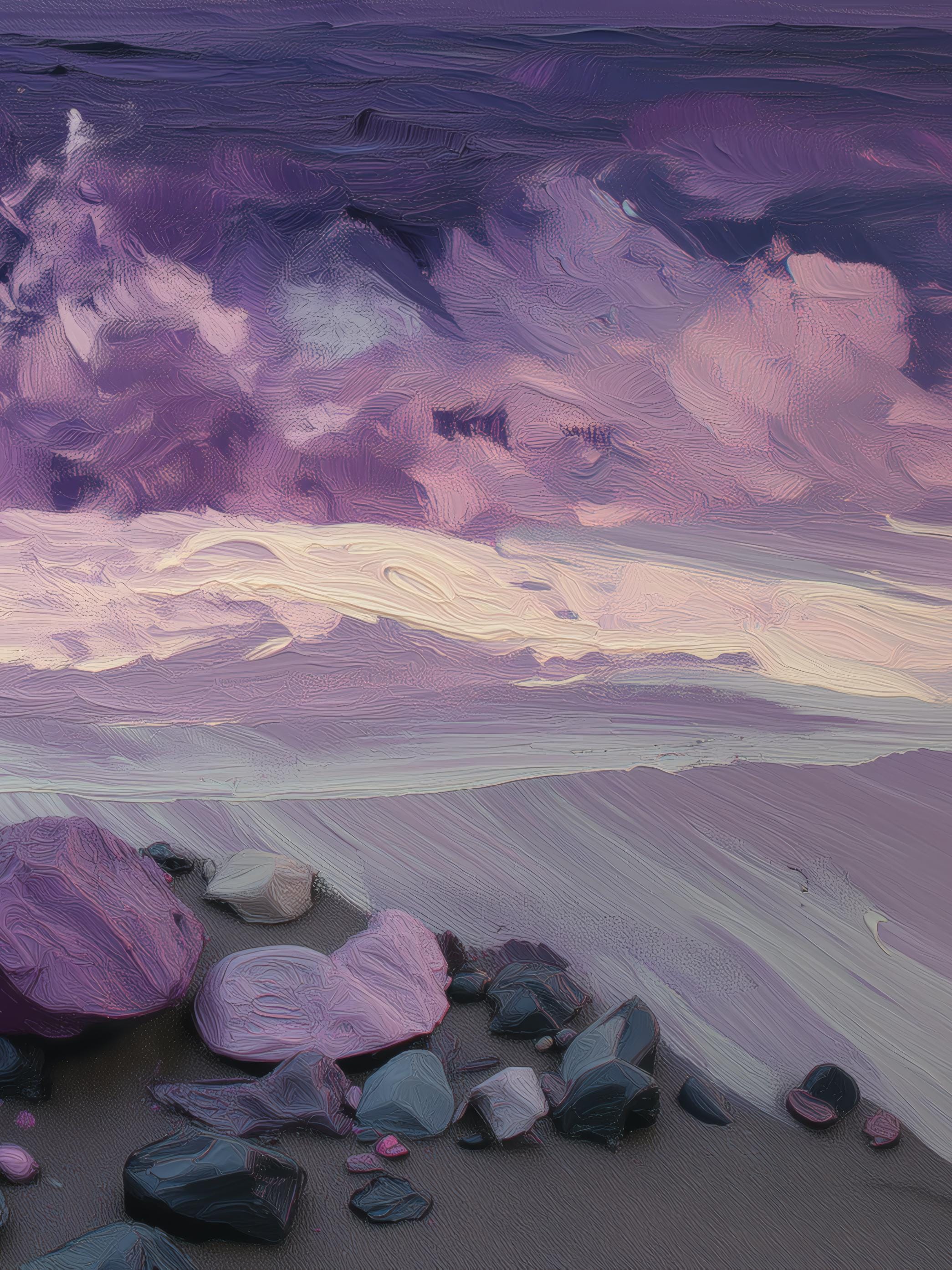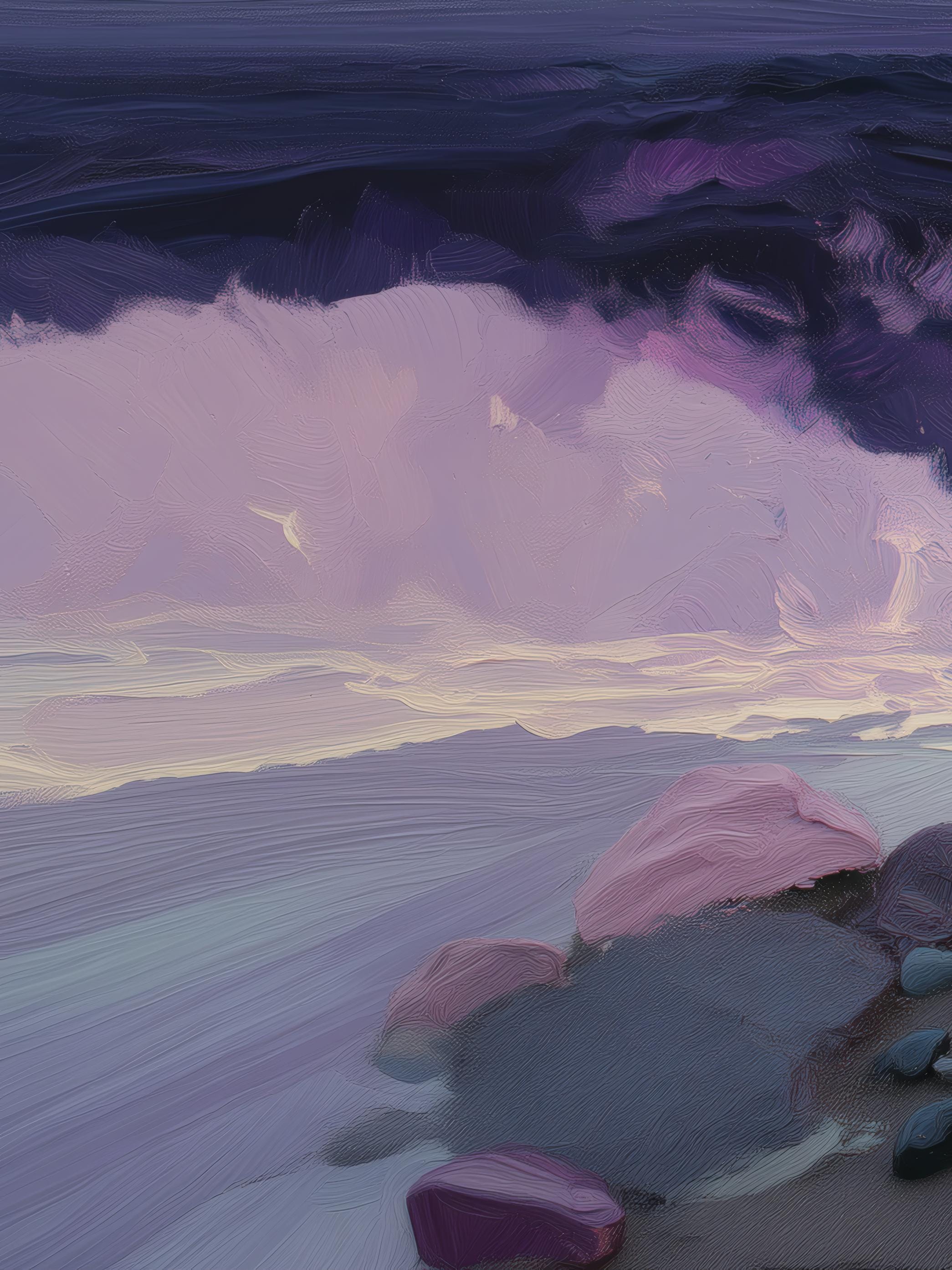 Experience the power of the sea with this impressionist purple ocean wall art. Featuring heavy, impasto-style brushstrokes, this textured coastal print captures the energy of an amethyst tide crashing against a dramatic shoreline. It’s a perfect blend of modern impressionism and abstract seascape design.