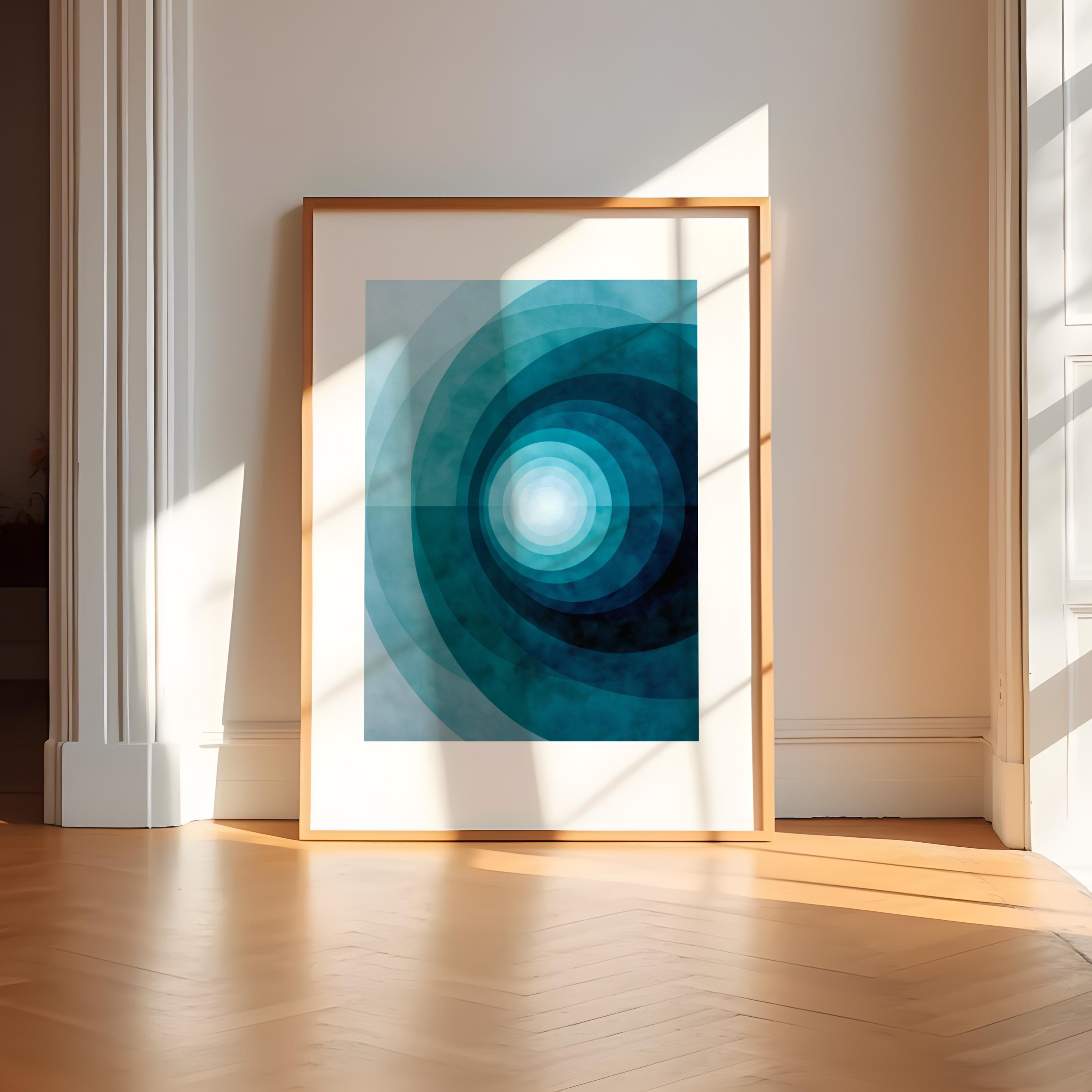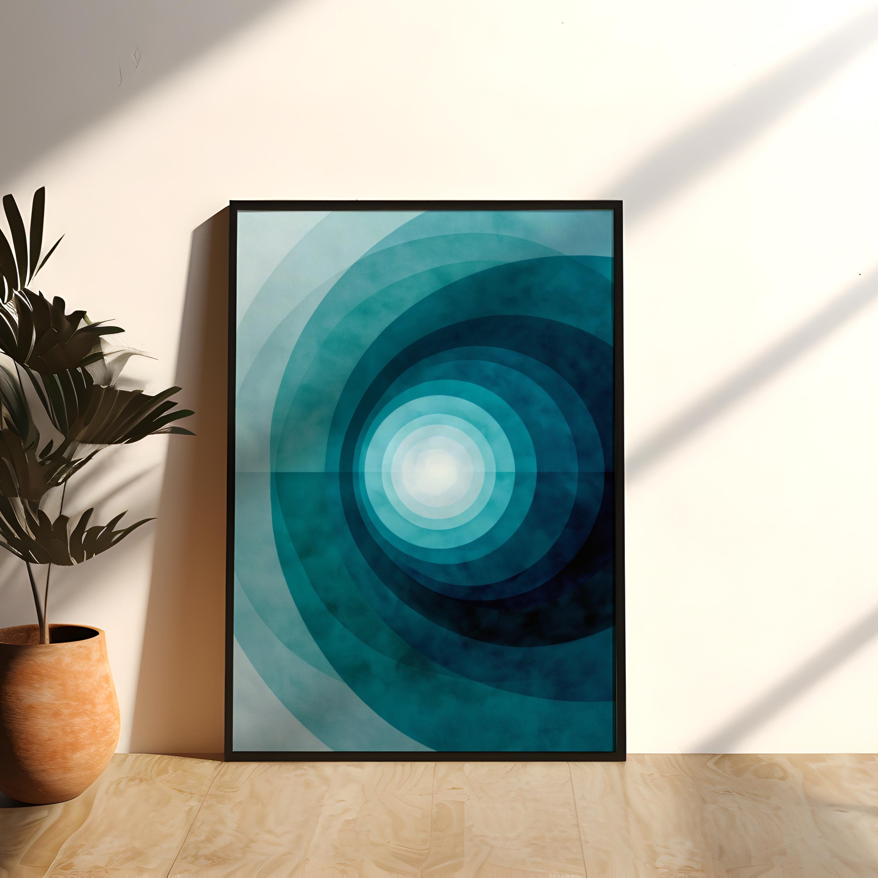Transform your walls with this Mid-Century Modern abstract print, where serene geometry meets coastal inspiration. Featuring a harmonising palette of navy, teal, and soft mint, this minimalist wall art is the perfect 'anchor piece' for a Scandi-style living room or a tranquil nursery. Whether you’re refreshing your own home decor or searching for a unique housewarming gift, this high-quality geometric poster offers a timeless blend of modern style and calming, oceanic vibes.